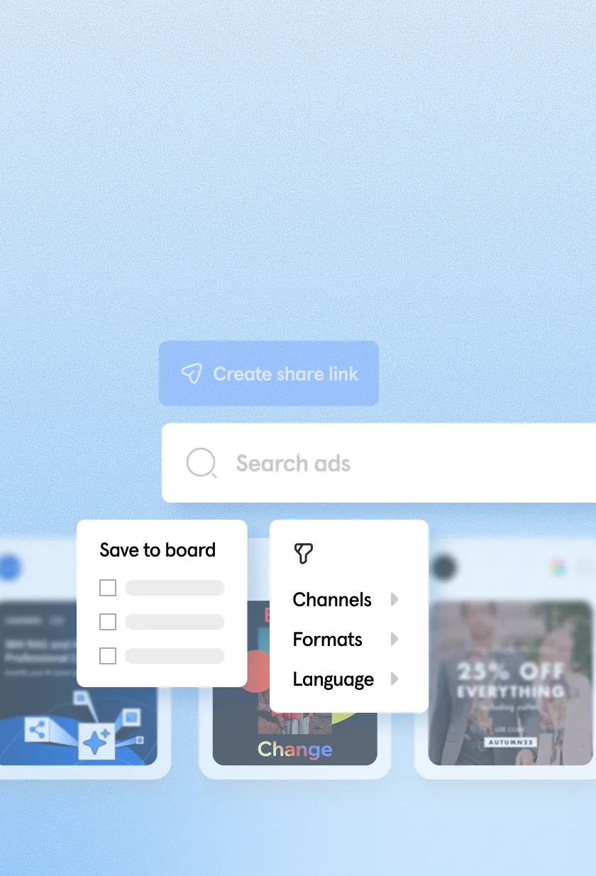 Track all your competitors' ads and unlock actionable insights that will help you win. All the intelligence you need is now in one place, finally.